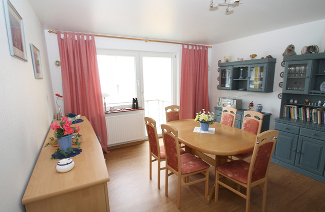 Die komplett eingerichtete, großzügige Dreiraumwohnung befindet sich zentral gelegen im Unterland. Sie bietet Platz für bis zu 6 Personen mit Schlafmöglichkeit für 4 Personen in 2 Schlafzimmern und 2 weiteren Personen auf der einen oder anderen Schlafcouch im Wohnzimmer. Die Wohnung befindet sich in der 1. Etage, verfügt über zwei kleine Balkone und bietet Seeblick auf die Badedüne. Im hauseigenen Wirtschaftsraum im Souterrain findet sich Waschmaschine und Trockner. Die zum Haus gehörende Terrasse kann genutzt werden. Ein WLAN - Hochgeschwindigkeitsinternet- und Telefonanschluss steht zur Verfügung.